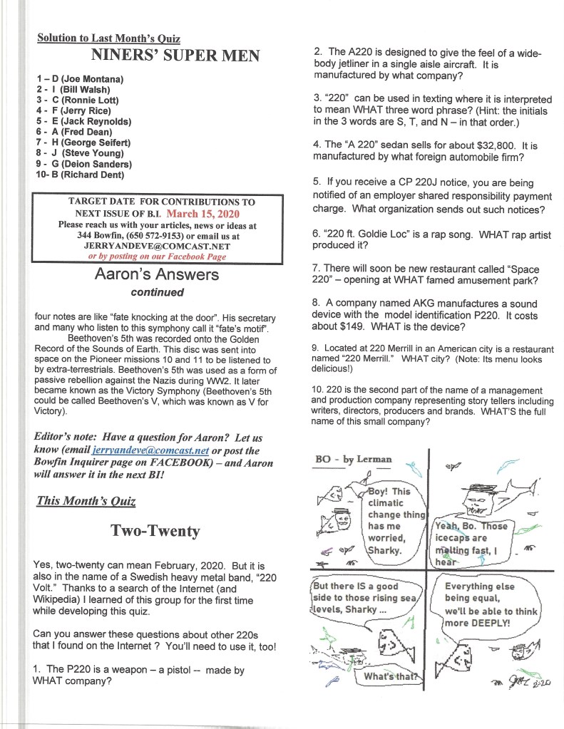 If you have some favorite jokes or puns, please feel free to share them with your neighbors via the Bowfin Inquirer!